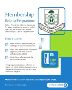 Membership application forms can be collected at U.W.I. Credit Union’s office and the required documents in the new member application guide can be located on our website www.uwicu.tt.