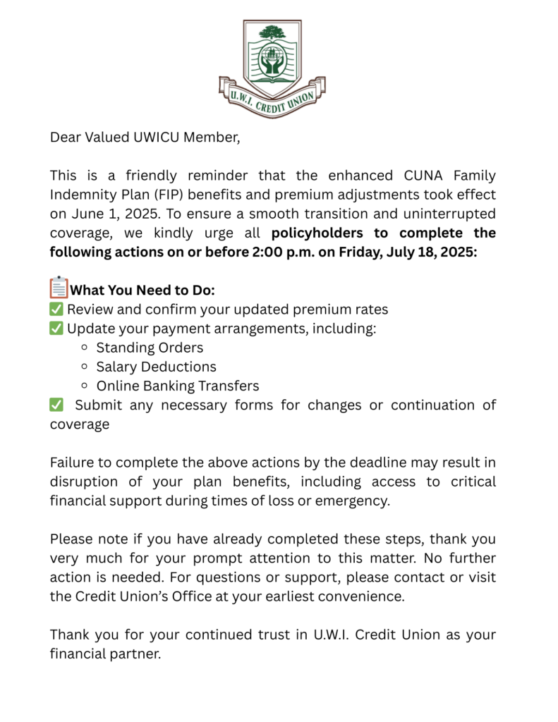 Click here to register to attend CUNA meeting for UWICU Members Click here to view CCIS FIP Brochure 2025 Click here to view CCIS FIP-Critical Illness Rider Brochure 2025
