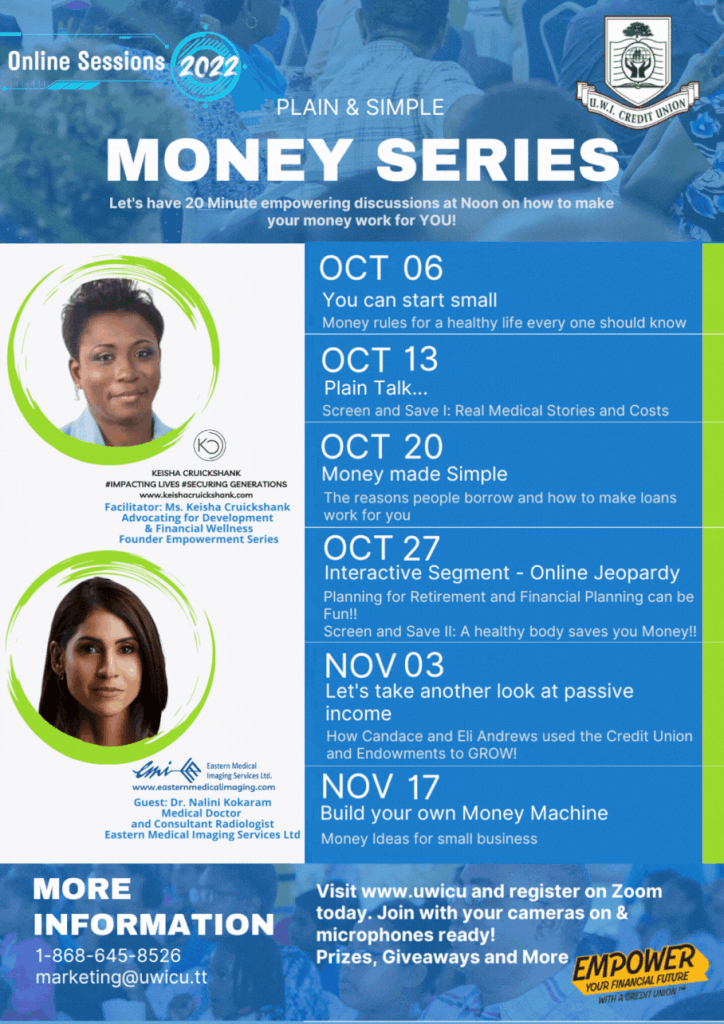 Click here to register for UWICU Plain & Simple Money Series 2022 UWICU Members thank you for joining UWICU on November 17th, 2022 via Zoom for the UWICU Plain and Simple Money Series.Please find the post series link for sharing with Membership:https://www.empowermentseries2022.com/uwicuplainandsimple.htmlIt includes highlights of the presentation delivered at the final session as well as […]