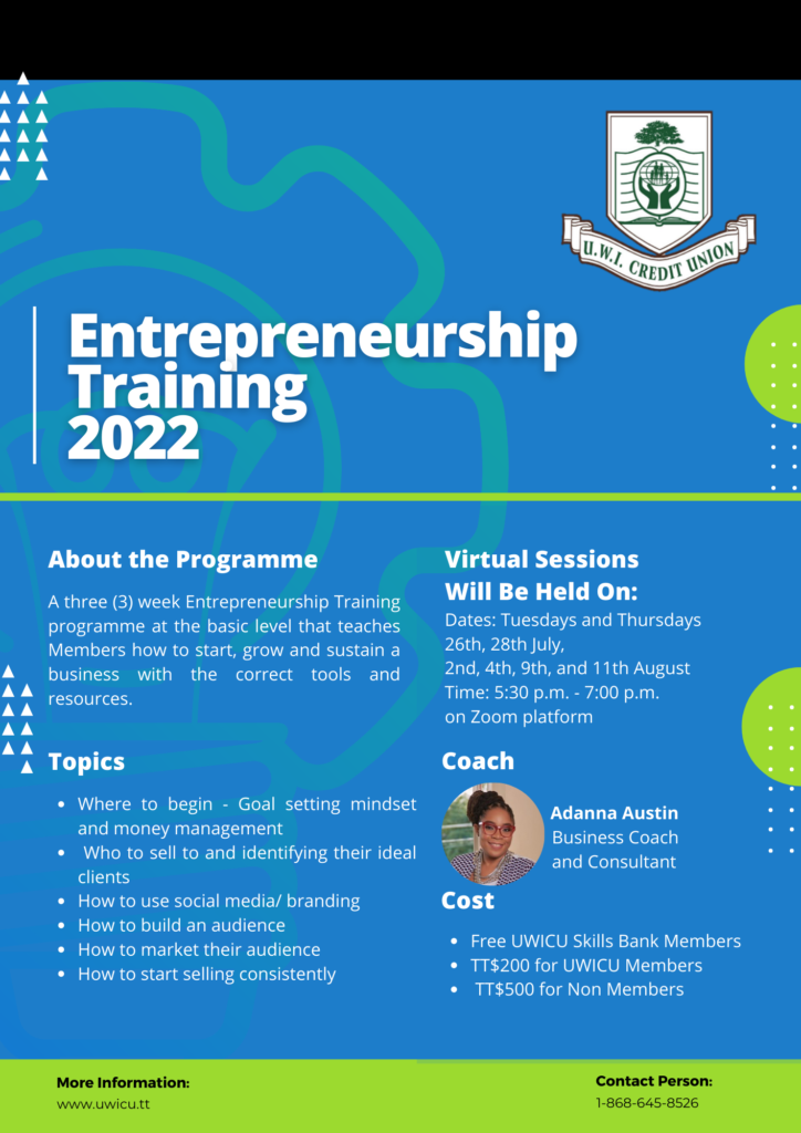 UWICU Members click here to register for UWICU Entrepreneurship Training 2022.