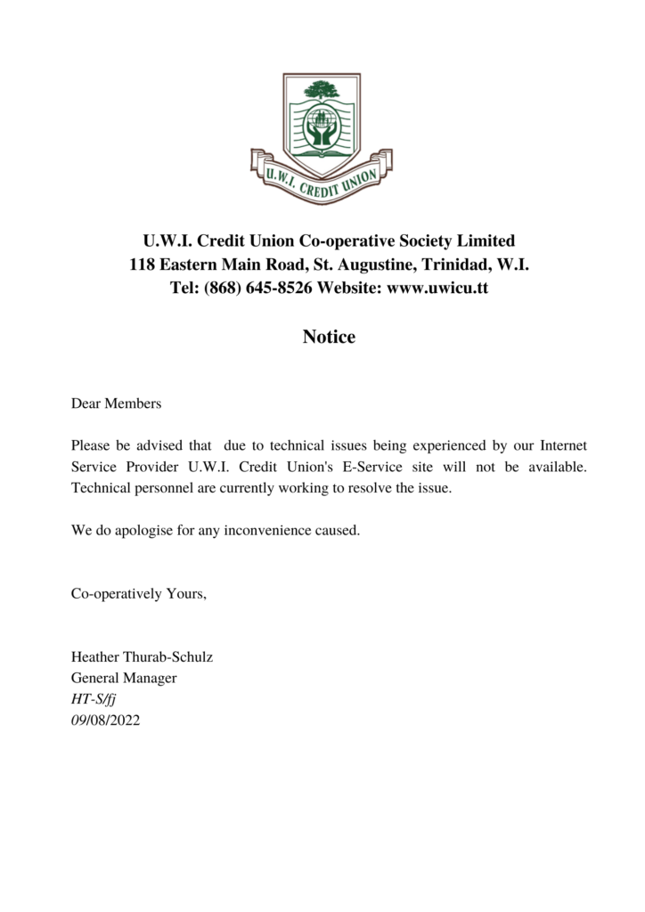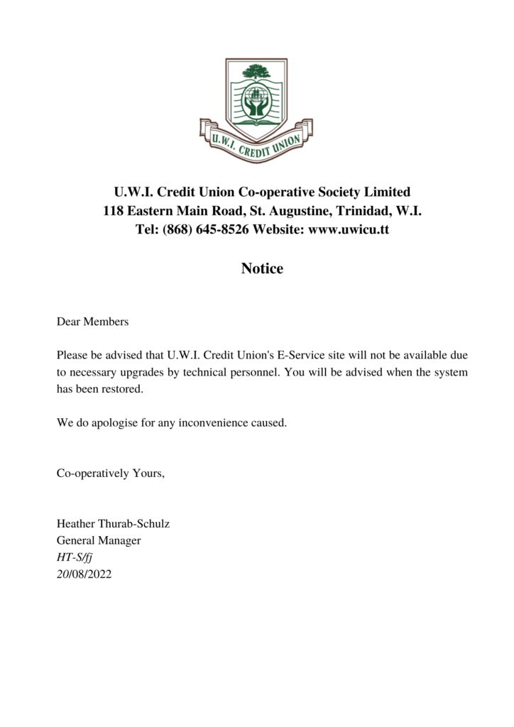 UWICU NOTICE 20/08/2022