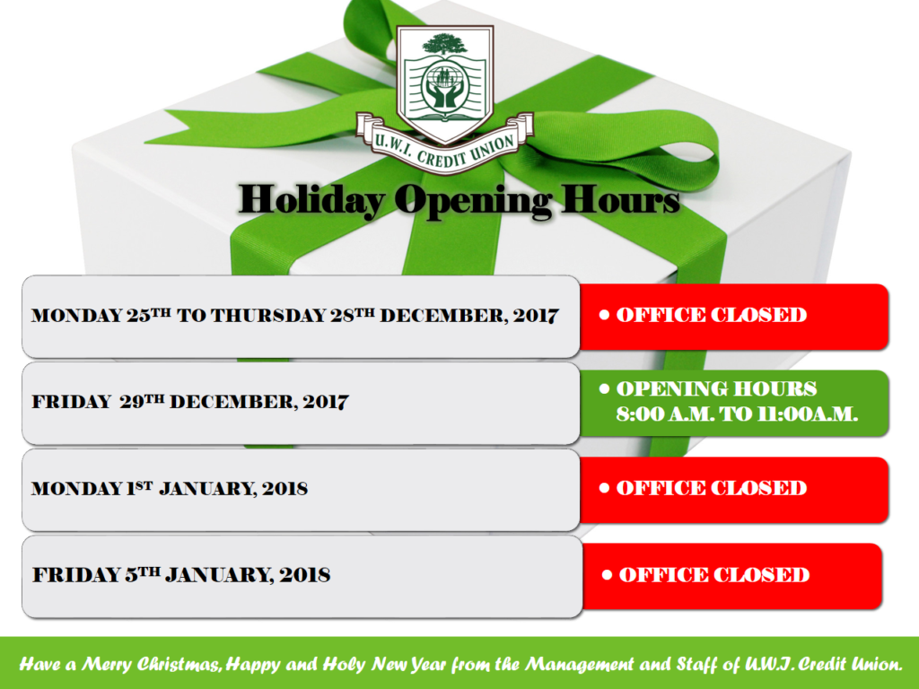 UWICU HOLIDAY OPENING HOURS