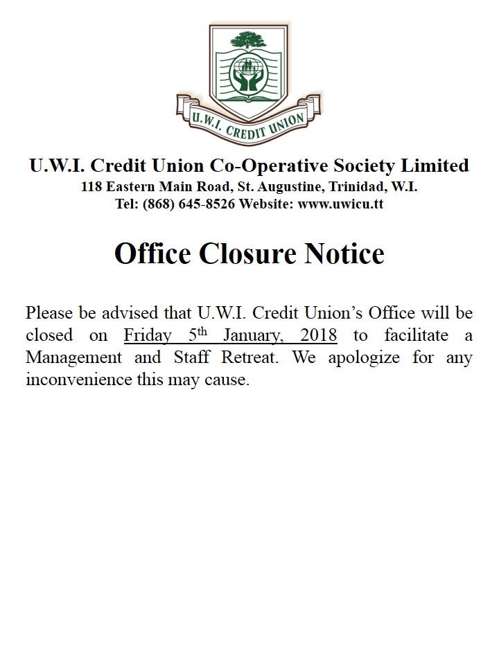 UWICU OFFICE CLOSURE NOTICE (5TH JANUARY, 2018)