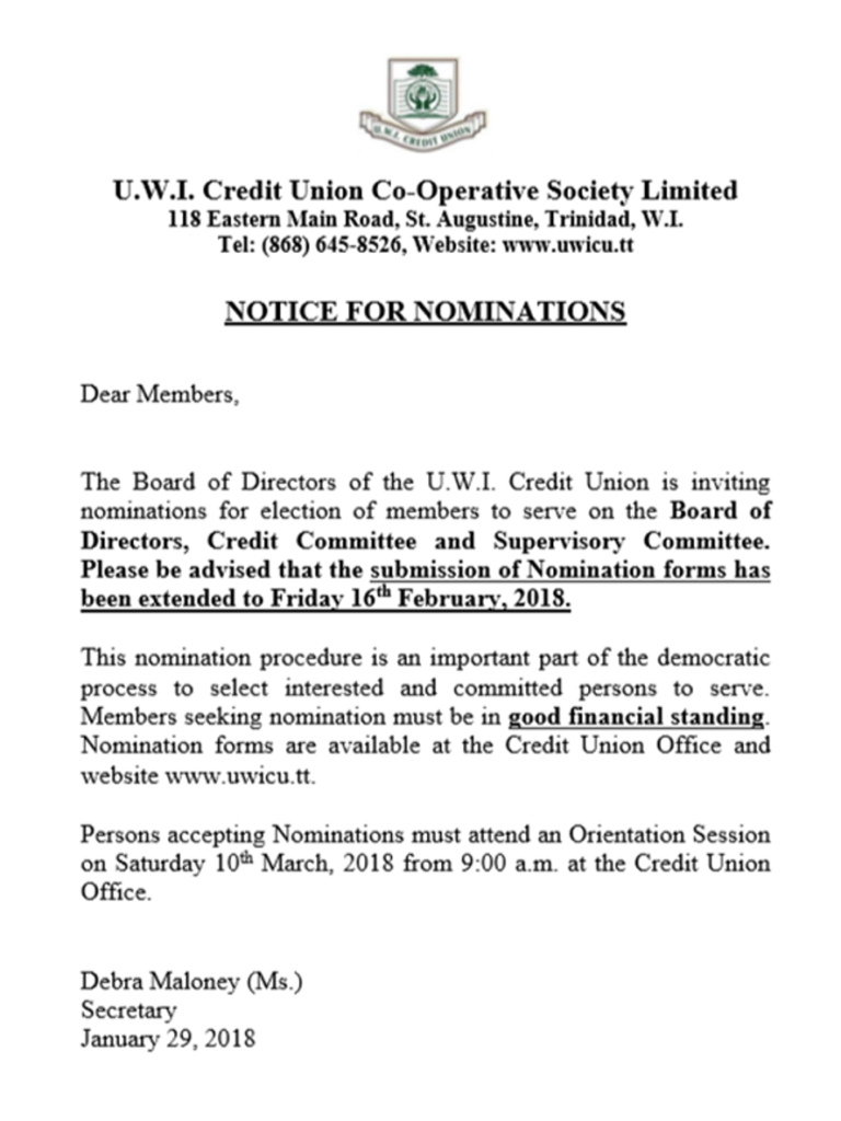 UWICU NOTICE OF NOMINATIONS 2018 -EXTENTION