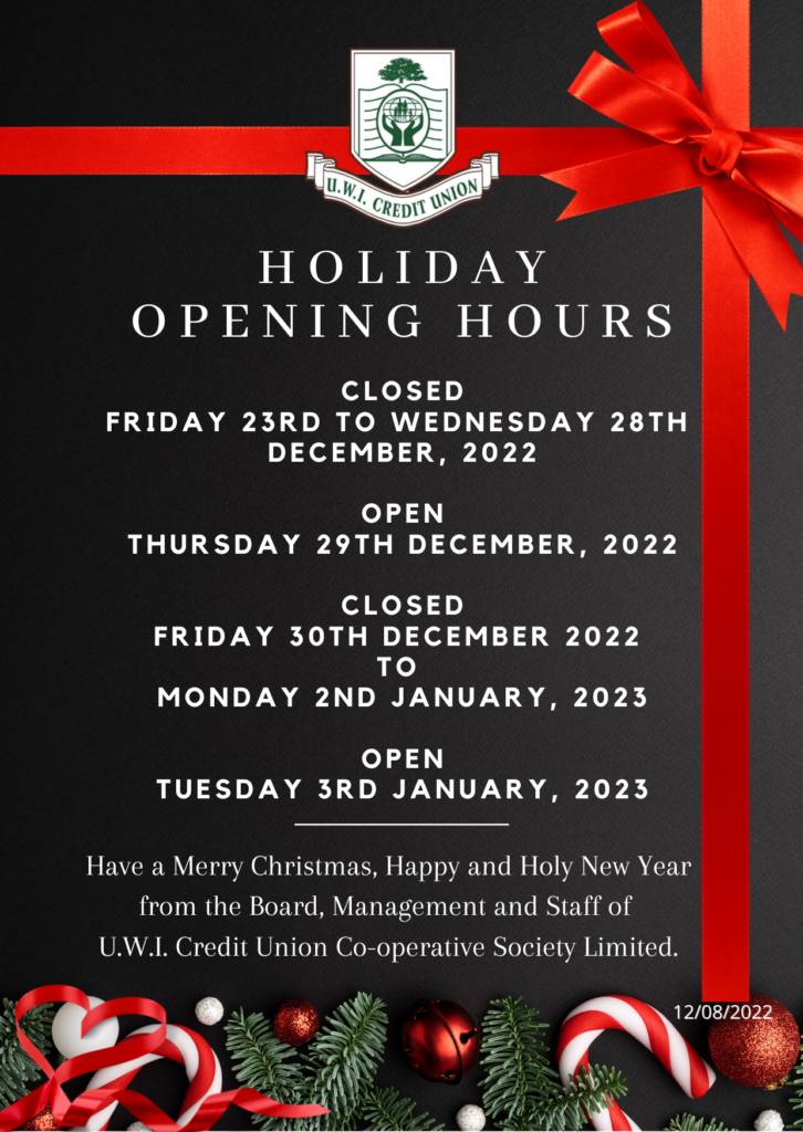 UWICU HOLIDAY OPENING HOURS