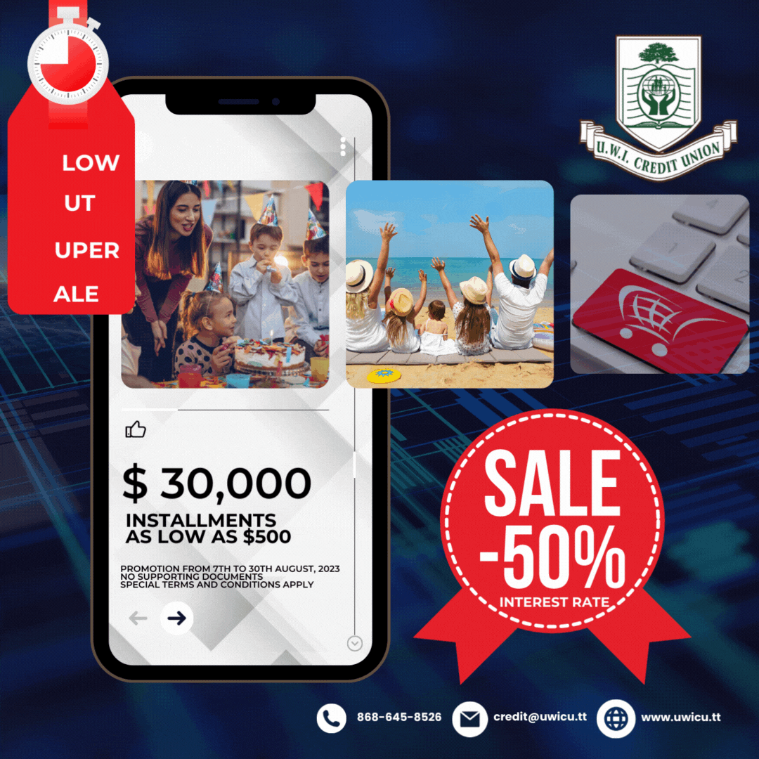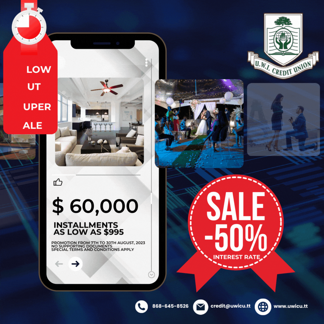 UWICU Members do not miss this opportunity to access your very own BOSS Loan Package, use it to purchase anything you desire… a high tech entertainment centre, visit family abroad, African safari, Mediterranean cruise, upgrade your vehicle, expand your stock portfolio, invest in your business, new kitchen appliances, build a gazebo and outdoor grill, etc. This time your imagination is your only limit. Time to take control of this BOSS!!!
