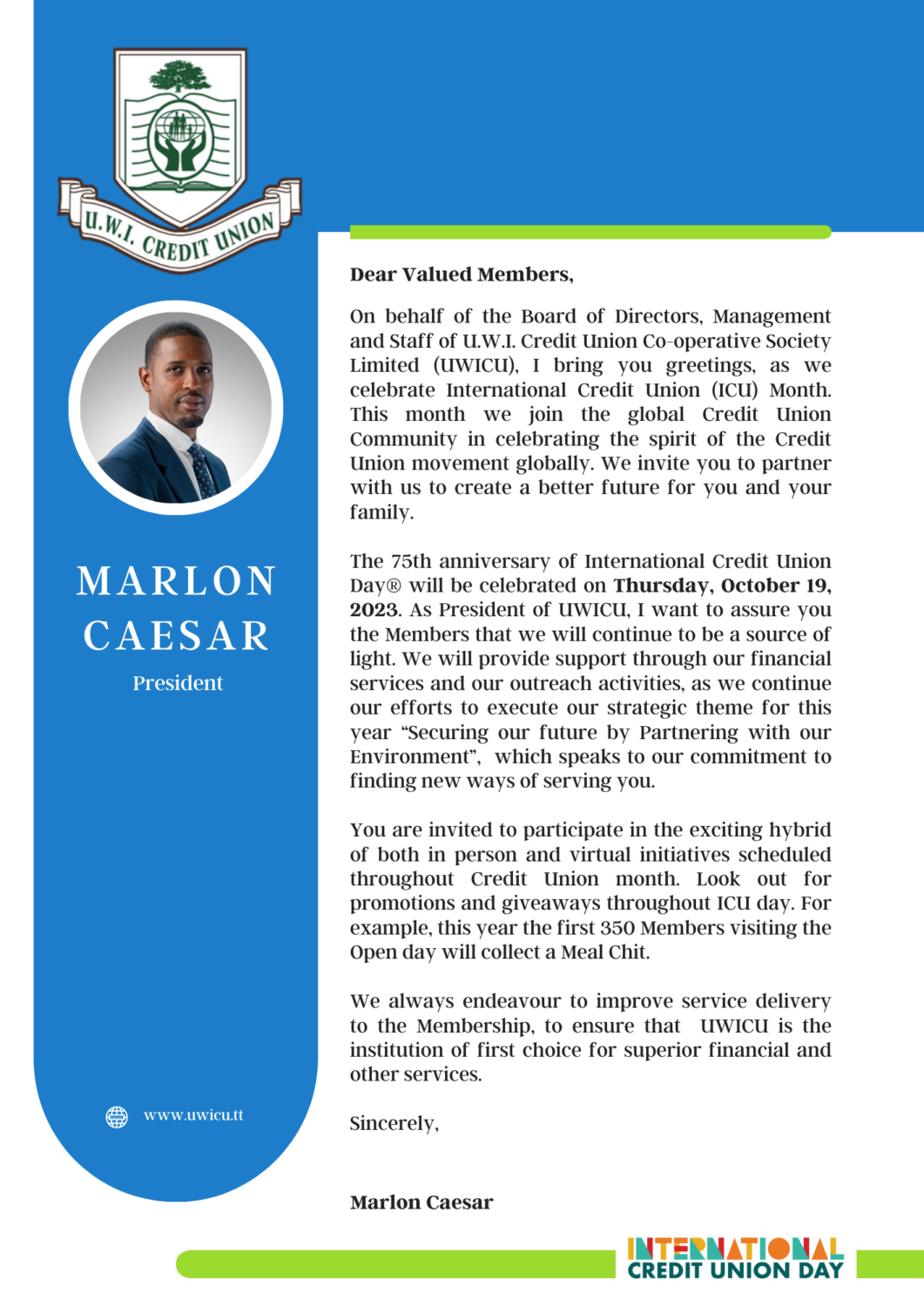 U.W.I. CREDIT UNION INTERNATIONAL CREDIT UNION DAY 2023 THANKSGIVING ONLINE PRAYER SERVICE