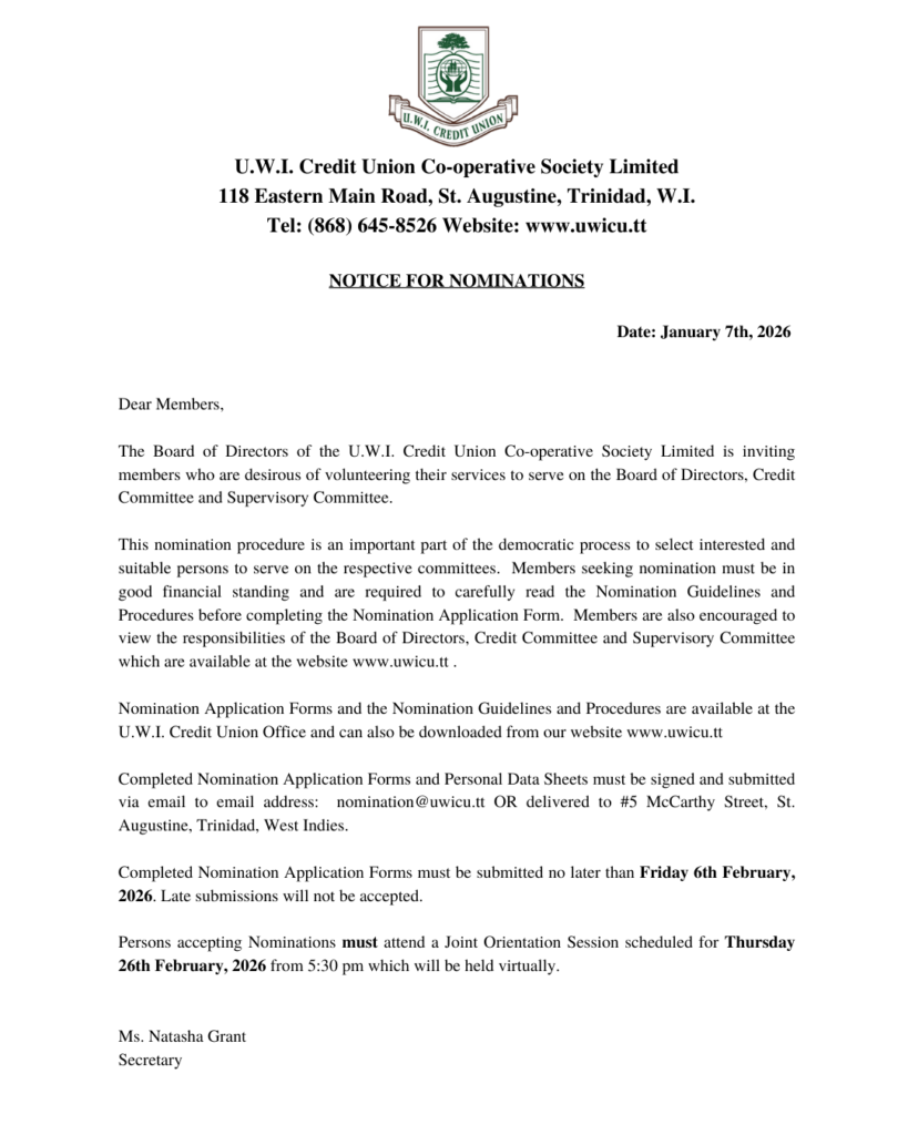 UWICU NOTICE FOR NOMINATIONS 2026Β