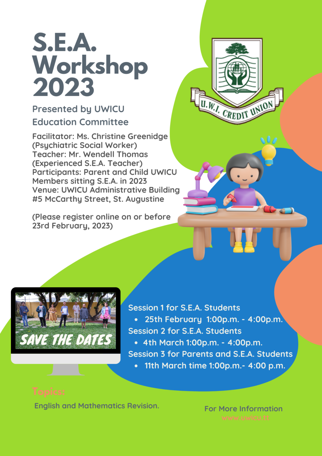 UWICU Members click on this link to register to attend the UWICU S.E.A. Workshop 2023.